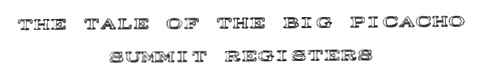 Six or seven years ago a San Diego climbing group led by Will Tapp climbed Big Picacho and found the register notebooks in a sad, soaked and bedraggled state because of a leaky register container. They brought the register papers down and Jane Rausch took the notebooks and papers home where she dried and straightened them. Shortly after I led a group including Jane and Lou Brecheen to the peak and afterwards Jane told me about the papers in her possession. I was going up again soon on a Memorial day climb and she offered to get them to me for returning. Joe McCosker heard of this register, asked Jane if he could look at it and afterwards pass it on to me at the DPS Banquet. Well, I didn't attend the Banquet and Joe didn't get them to me until after my climb. I went down again later that year with Paul Freiman, Jim Hinkley, Doug Mantle and others and I brought my bundle (several bedraggled notebooks and a clutter of many loose papers, scraps, business cards, 2"x2" gauze pad wrappers, and a label from a can of Fed Mart Hawaiian Pineapples) up to Campo Noche. Paul wanted to look at the registers in camp so I passed them to him to read and asked that he put them afterwards in his summit pack and carry them up the next day. The next day after reaching the top I asked Paul for the papers and as I asked, a look of consternation crossed his face. He had forgotten and left the notebooks in his backpack below. Moving on in time I organized yet another trip to climb El Picacho with Karen Leonard, Ron Hudson and others and this time I left the papers with my clean clothes at the roadhead! Finally I organized a climb of Big Picacho with the CMC for November 1990. I transcribed many of the pertinent entries for this SAGE writeup, my youngest son, Keith, joined the CMC just for this climb and then early in the very morning that Jim Hinkley, R J Secor, Graham Breakwell, Kent Santleman, my son and I were to leave, Leora's father died ( read RJ's account of the climb on page 43 ). So the notebooks, Keith and I stayed behind and I hope to finish the job on a fast climb with a small group this April. Anyway, here are selected register entries from 1966 through 1984. Not all climbs have entries as some pages are illegible or missing from the collection. Incidentally I found my signature from 6 of my prior climbs. Ironically, all the subsequent registers now reside in the safe-keeping of the Alpinistas de Tijuana who took all the prior registers down when they left their fine new register box and book. There are 3 categories of memorabilia to go through: The oldest is a 6 ring leather binder with a sticker on front reading "Desert Rats Uninhibited - Dedicated to the principles of absolute & total unusualism". This probably was placed on 11/26/66 by Gene Gail (John Robinson - verbal ) which is the oldest loose page entry I found. Entries from this I have cited with a #. There is also a fabric flower print vertical spiral bound notebook placed on 12/27/73. This citation is *. Finally there are many loose scraps the oldest of which is 11/29/69 although there is an earlier entry dated only 1969. This citation is @. |