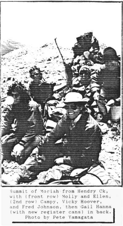![]() RE: Mt. Moriah (l2,050') Dear Ron, I wholeheartedly support the addition of Mt. Moriah in eastern Nevada's Snake Range to the list at' DPS peaks. I enjoyed a climb of the peak July 3-4 with a group led by Vicky Hoover. The Snake Range is best known for Wheeler Peak. However, writes John Hart in Hiking the Great Basin, "if Wheeler Peak were leveled tomorrow, the rest of the range would still be compelling, with great cliffs, lofty peaks, timberline forest, and precipitous canyons by the dozen. The separate northern section (with the Mt. Moriah Wilderness) is scarcely Less remarkable than the southern; it contains The Table, an 11,000' plateau covering more than 3 square miles." Bristlecone Pine may be found at as low as 7,000'. There are various 4WD approaches to Mt. Moriah. The easiest, standard vehicle route (20 miles round trip) is via the Hendrys Creek trail, surely one of the lushest aras in the Great Basin, rich in riparian species. Higher up above the aspen stands are Douglas Fir, Juniper, and Limber and Bristlecone Pines. The summit views of the nearby high Table plateau, the desert far below, and in the distance of Wheeler Peak and the Schell Creek and Deep Creek Ranges are grand indeed. I can find no reason for not adding Mt. Moriah to the DPS list and find numerous ones for doing so. I also believe the Currant Mountain (11,513') in the White Pine Range near Ely also deserves designation as a DPS peak. This is a rugged, imposing, precipitous limestone crest, but presents no climbing problems (only minor route finding ones). Another fine example of a Great Basin desert/alpine peak. Best regards, Fred Johnson |